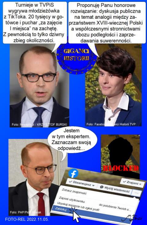 Młody działacz PiS, Oskar Szafarowicz wygrał w konkursie Giganci Historii. Oczywiście według oPOzycji ktoś tak młody, a dodatkowo prawicowiec, nie mógł wygrać teleturnieju. Posypała się fala hejtu, do którego przyłączył się ochoczo poseł Szczerba słowami: "Turnieje w TVPiS wygrywa młodzieżówka z TikToka. 20 tysięcy w gotówce i puchar „za zajęcie I miejsca” na zachętę. Z pewnością to tylko dziwny zbieg okoliczności. ".