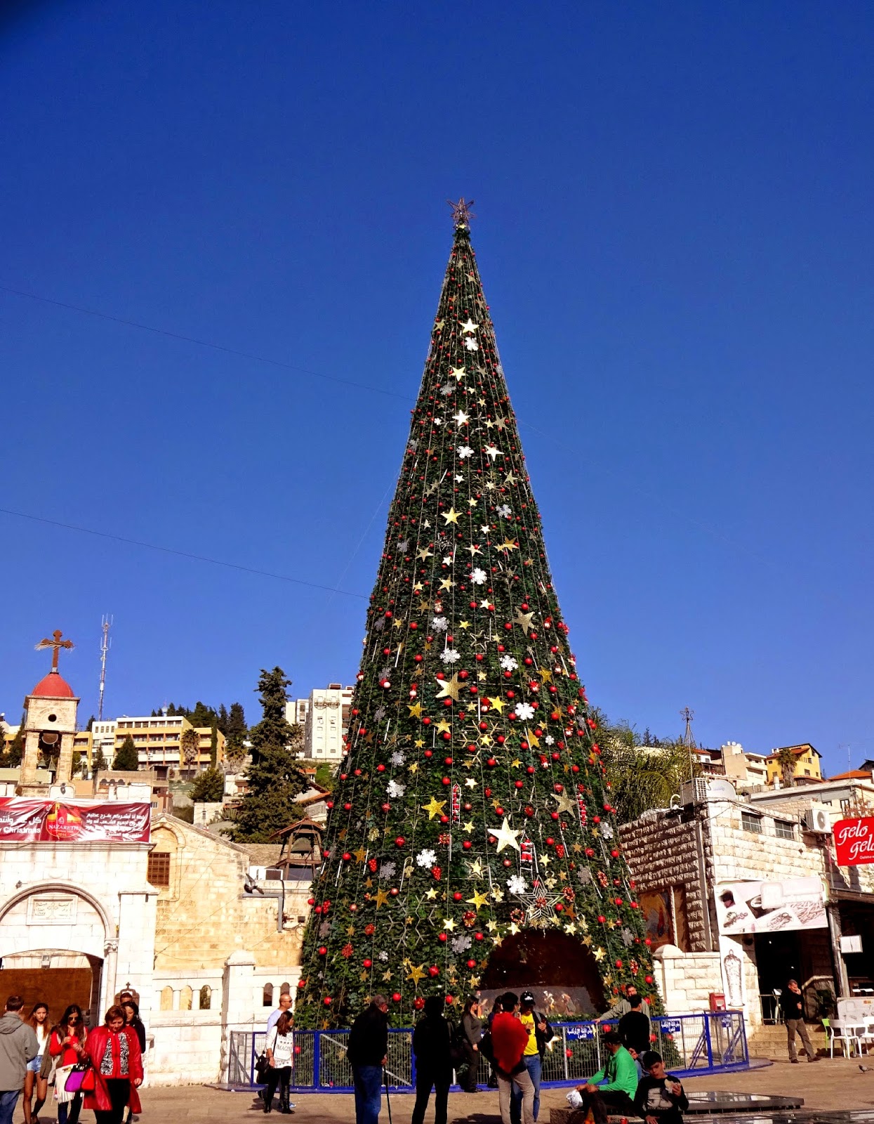 W Izraelu są choinki i obchodzą Boże Narodzenie tak jak my, ale sytuacja chrześcijan sytuacja jako mniejszości jest trudna. Poniżej choinka Bożonarodzeniowa w Nazarecie.