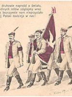 Z Hufców Czarnieckiego,Zastępów Chrobrego, Strzelca patriotów,Legionów Piłsudskiego - Gdzieś z pomroki dziejów, czasów Mieszka Wojów, Hasło dziś wybrzmiewa, do podjęcia boju. Bój będzie niełatwy,ofiarny i długi, bo przyszło nam przegnać dziś szatańskie sługi. Siedzi nam nad Wisłą, jak otwarta rana, czerwona hołota, sowieckiego pana. Lżą nas wciąż bezczelnie, pozbawiają chleba ciągle pokrzykując,...