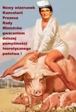 W tym samym czasie, gdy Ewa Kopacz zagaduje obywatela w sprawie zapachu kotlecika, nabytego w Warsie – równolegle do Pendolino po drogach i autostradach mkną przez całą Polskę tiry z wyposażeniem kancelarii prezesa rady ministrów. W jednej ciężarówce jadą stoły, w drugiej zaś krzesła, a w trzeciej jadą dywany i spakowane starannie mikrofony, głośniki. ..