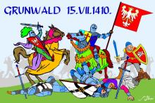 Znalazłem kiedyś rysunek Michała Tomaszka przedstawiający Krzyżaków przypatrujących się bitwie pod Grunwaldem toczonej przez samych Polaków, z podpisem: "Chyba zaczęli bez nas...".
