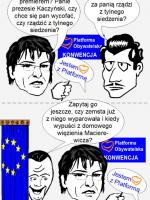 Co się dzieje ? Zdaje się, że nagła fala demokratyzacji zalewa media, a szczegłólnie TVP. No, może z tymi mediami trochę przesadziłem, bo oglądam je nieregularnie, włączając okazjonalnie i przypadkowo dla zbadania poziomu natęzenia propagandy. Ale jak zobaczyłem Kaczyńskiego tu i Kaczyńskiego tam, to poczułem sę zaskoczony. Czyżby Kaczor posiadł zdolność bilokacji? Macierewicza też się uda...